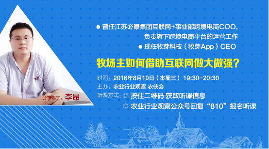 對農牧產業來講,到今天,互聯網確實到了一個風口。農業分種植與養殖,目前我們的養殖其實已經完成了一個扭轉——集約化。而在集約化的形式下,農業更適合與互聯網相結合。