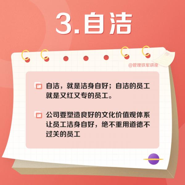 自潔,就是潔身自好;自潔的員工,就是又紅又專的員工。