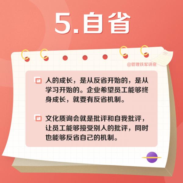 文化質(zhì)詢會就是批評和自我批評,讓員工能夠接受別人的批評,同時也能夠反省自己的機制。