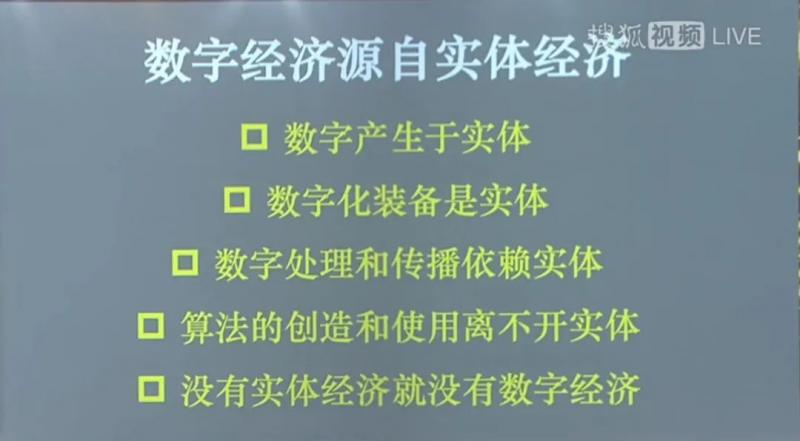 我們大家都在朝著這樣的方向去努力、去發(fā)展,但是,我感到數(shù)字經(jīng)濟(jì)發(fā)展的時候,一定要把數(shù)字和物質(zhì)、能源結(jié)合起來,數(shù)字技術(shù)、信息技術(shù)要和工業(yè)技術(shù)結(jié)合起來、融合起來。