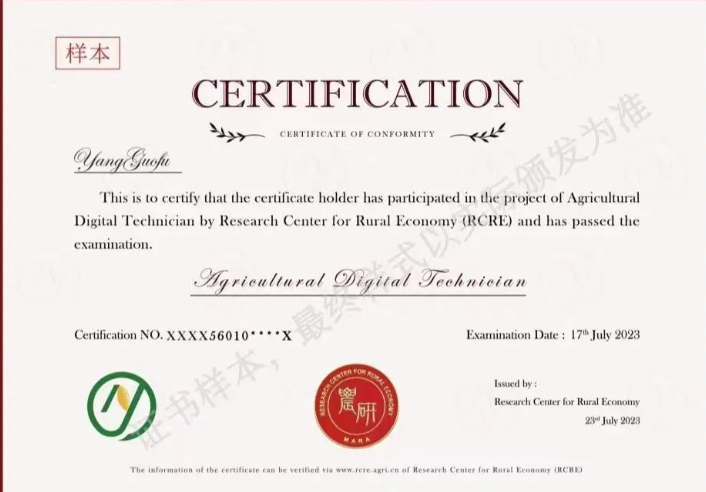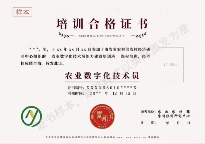 農業數字化技術員證書由農業農村部農村經濟研究中心頒發,全網可查。
