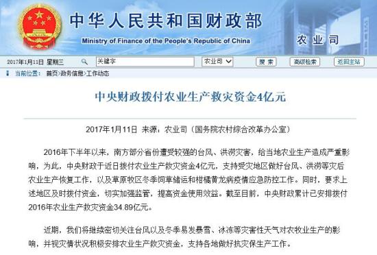 同時,財政部要求上述地區及時撥付資金,切實加強監管,提高資金使用效益。截至目前,中央財政累計已安排撥付2016年農業生產救災資金34.89億元。