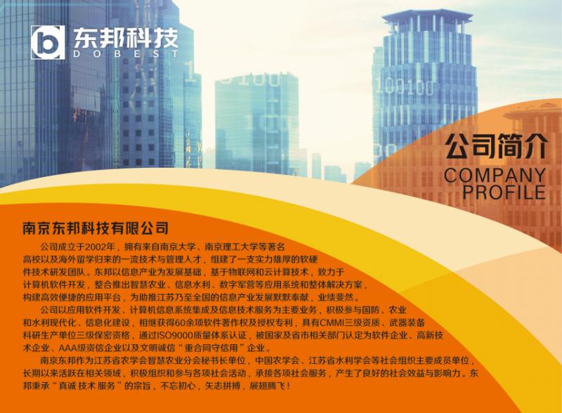 成立于2002年的南京東邦科技有限公司,是一家致力于計算機(jī)軟件開發(fā)的高新技術(shù)企業(yè),是較早進(jìn)入水利信息化建設(shè)的企業(yè),之后切入智慧農(nóng)業(yè)領(lǐng)域,成為農(nóng)業(yè)智慧系列服務(wù)商,并致力于高效農(nóng)業(yè)的推廣。