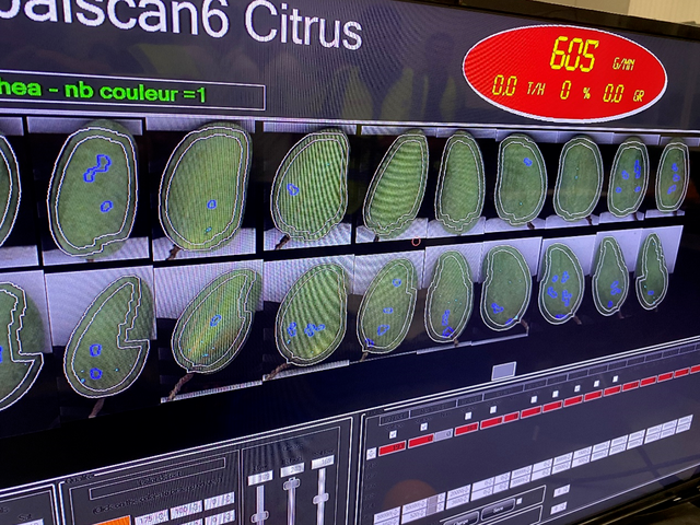 數字化是廣西、云南兩個產地倉最大的特色。數字化中控室可同步了解兩省農產品數據和入庫情況;水果被送上分選設備后如同做CT,光電分選機能夠測出每一顆水果的酸甜度、果面光潔度,是否有霉斑、劃痕等。而水果果徑也可以精確到毫米,重量精確到0.5克。