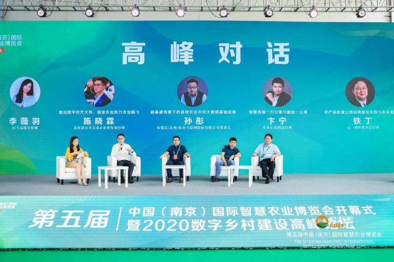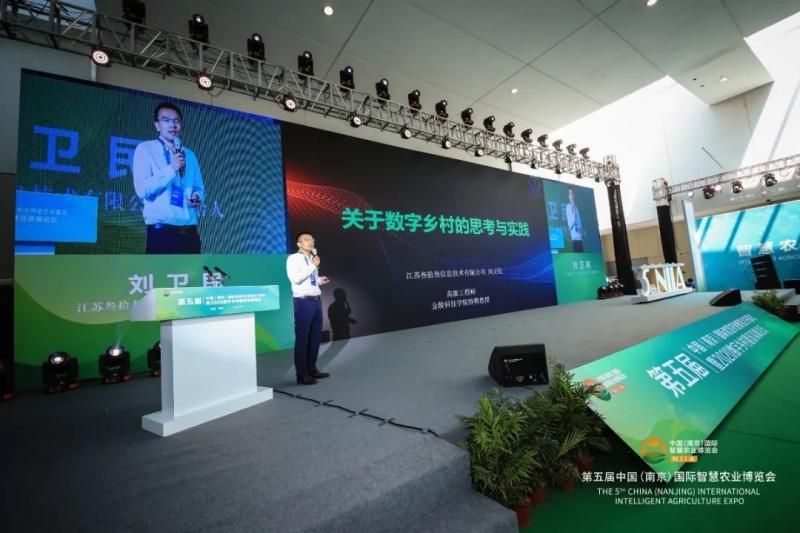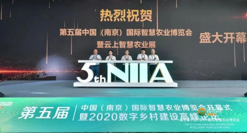 農業農村部信息中心主任王小兵、江蘇省農業農村廳二級巡視員黃非、江蘇省供銷合作總社二級巡視員吳建強、江蘇省科學技術協會秘書長周景山、南京市農業綜合行政執法總隊總隊長李明水上臺,宣布云上智慧農業展首發、微信小程序上線,并共同啟動第五屆中國(南京)國際智慧農業博覽會開幕式。