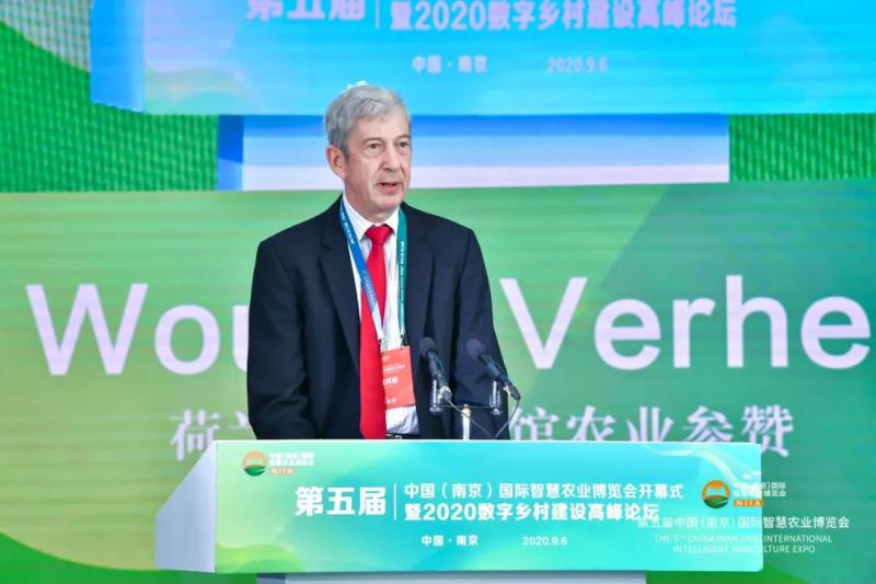 展會同期舉辦第五屆中國(南京)國際智慧農業博覽會開幕式暨數字鄉村建設高峰論壇。農業農村部信息中心主任王小兵、江蘇省農業農村廳二級巡視員黃非、商洛市農業農村局局長劉清民、荷蘭駐華大使館農業參贊Wouter Verhey出席開幕式并致辭。