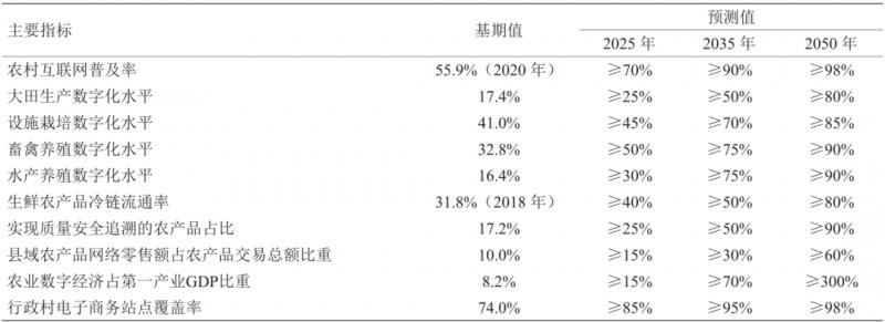 表 1 我國智慧農(nóng)業(yè)發(fā)展的主要指標預測值