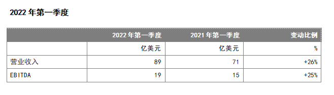 集團第一季度EBITDA為19億美元,同比增長25%市場對供應的擔憂推動了提前采購,促進了集團各業務單元的強勁表現
