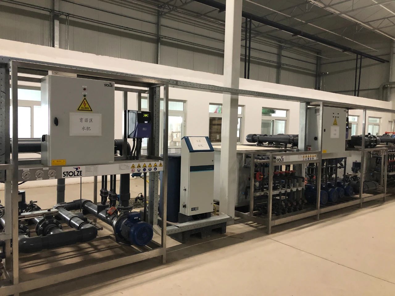 項目采用Priva Connext過程控制系統,自動精準的集成控制溫室內氣候、光照、灌溉和能源等種植過程模塊。通過Priva connext控制Priva Nutri-line施肥機進行精準化水肥管理,對供水端水源進行EC的預控制,根據植物需求精確供給營養元素,對番茄不同生長階段及生長情況配置營養液。通過室內二氧化碳傳感器收集到的各項實時數據,計算CO2實際需求量,自動化CO2補給系統能定時定量為植物補充CO2,滿足植物生長需求,供暖季可通過天然氣燃燒的廢氣分離獲得CO2,非供暖季通過工業二氧化碳獲得,貫徹實踐了可持續發展的環保理念。