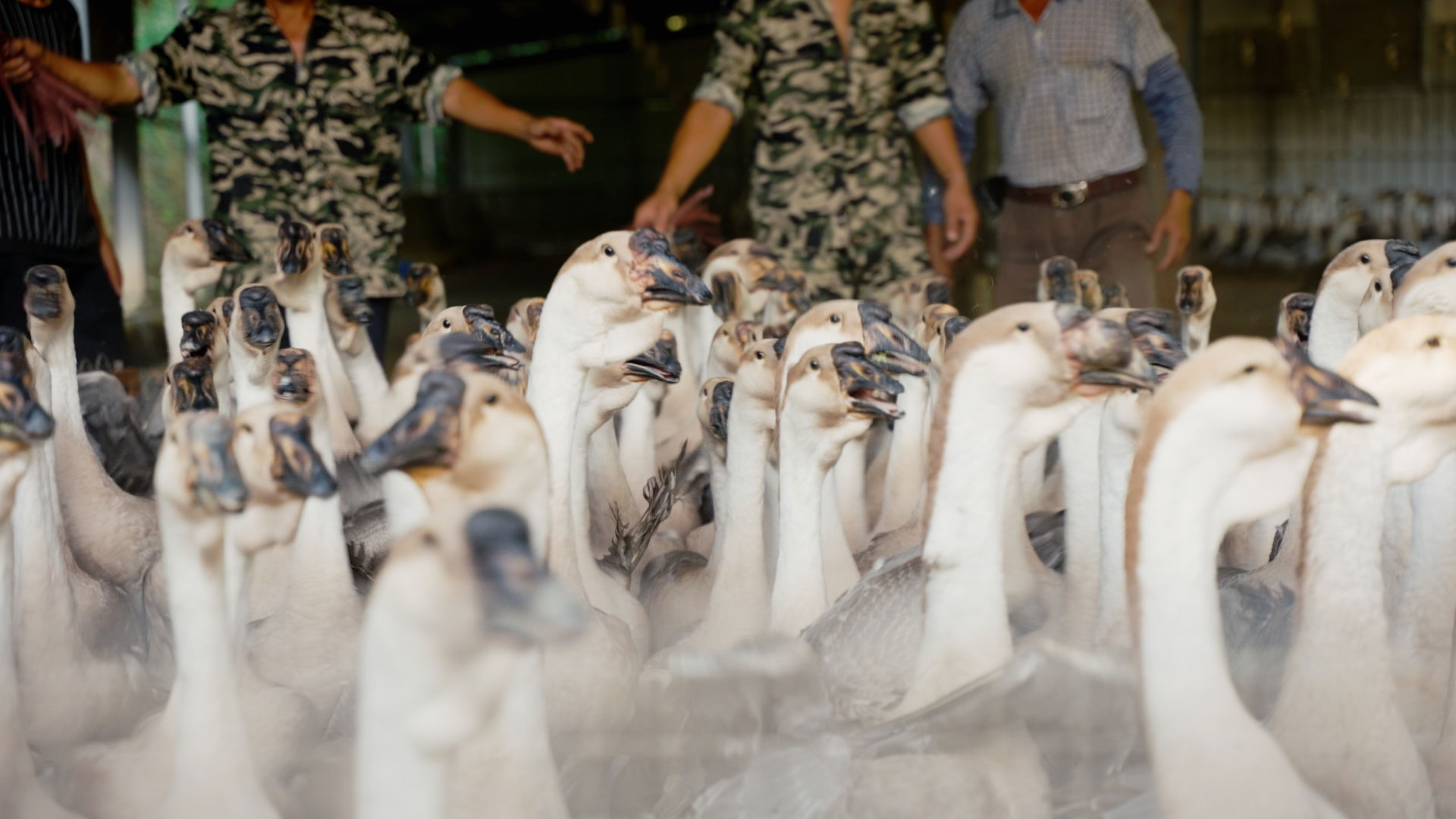 “油都跑完惹(了),還沒咻(收)到!一定系(是)今天硬(運)氣不太好。”在連續跑了多家養殖戶卻沒有收購到足夠的獅頭鵝后,林仰斌操著一口濃重的潮汕普通話,失望地嘆了口氣。