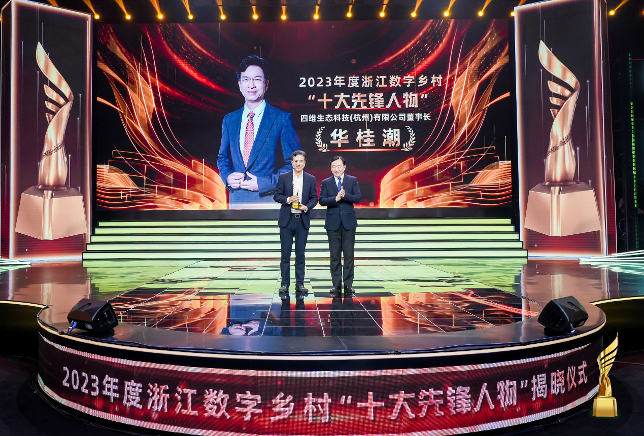 在眾多杰出人物的激烈競爭中,四維生態科技(杭州)有限公司董事長華桂潮脫穎而出,榮獲2023年度浙江數字鄉村“十大先鋒人物”稱號。這一榮譽不僅是對華桂潮個人卓越貢獻的認可,更是對他在數字化鄉村建設領域所取得的杰出成就的贊譽。