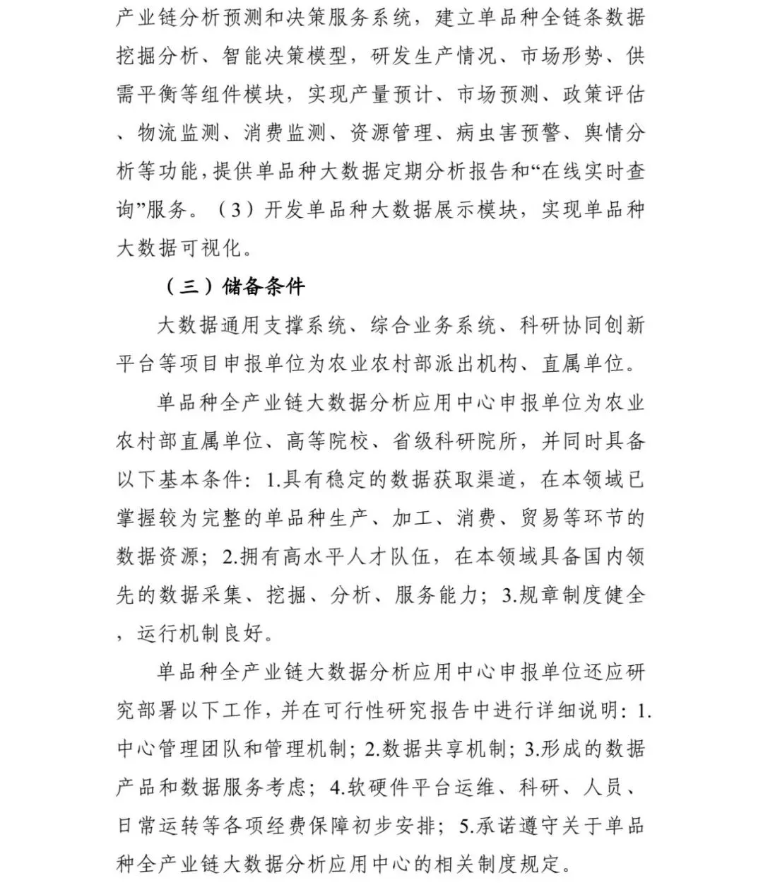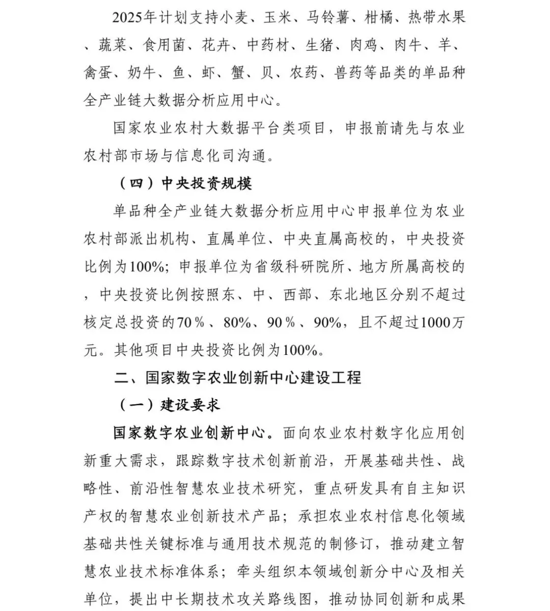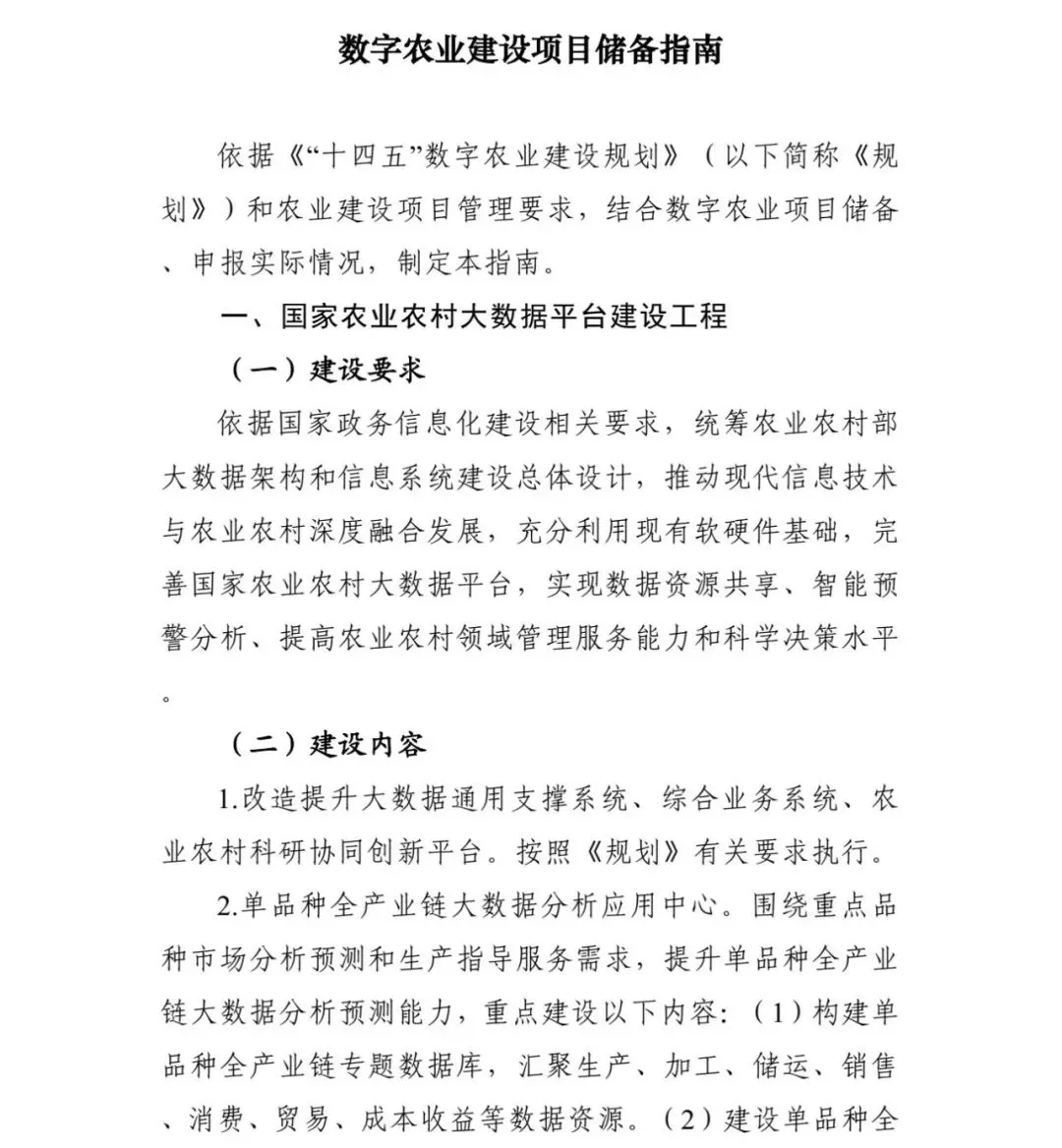 日前,農(nóng)業(yè)農(nóng)村部計(jì)劃財(cái)務(wù)司印發(fā)了《關(guān)于做好2025年農(nóng)業(yè)建設(shè)項(xiàng)目?jī)?chǔ)備工作的通知》(農(nóng)計(jì)財(cái)便函〔2024〕258 號(hào)),通知要求按照中央預(yù)算內(nèi)投資、“兩重”建 設(shè)項(xiàng)目管理有關(guān)要求,以及“大穩(wěn)定、小調(diào)整” 的原則,指導(dǎo)各地各單位做好2025年中央預(yù)算內(nèi)投資、“兩重”建設(shè)農(nóng)業(yè)領(lǐng)域項(xiàng)目;涉及數(shù)字農(nóng)業(yè),標(biāo)準(zhǔn)農(nóng)田建設(shè),畜禽糞污資源化利用,現(xiàn)代種業(yè)提升工程,農(nóng)業(yè)科技創(chuàng)新等項(xiàng)目。