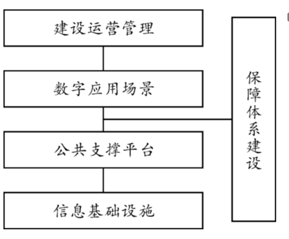 從《建設指南》的文本分析看,其內容與《數字鄉村發展戰略綱要》一起共同構成了數字鄉村建設的頂層設計。《建設指南》主要針對縣級層面的數字鄉村建設實踐,設計出了一個總體框架。這一框架由五大部分構成:建設運營管理、保障體系建設、數字應用場景、公共支撐平臺、信息基礎設施(見圖1)。