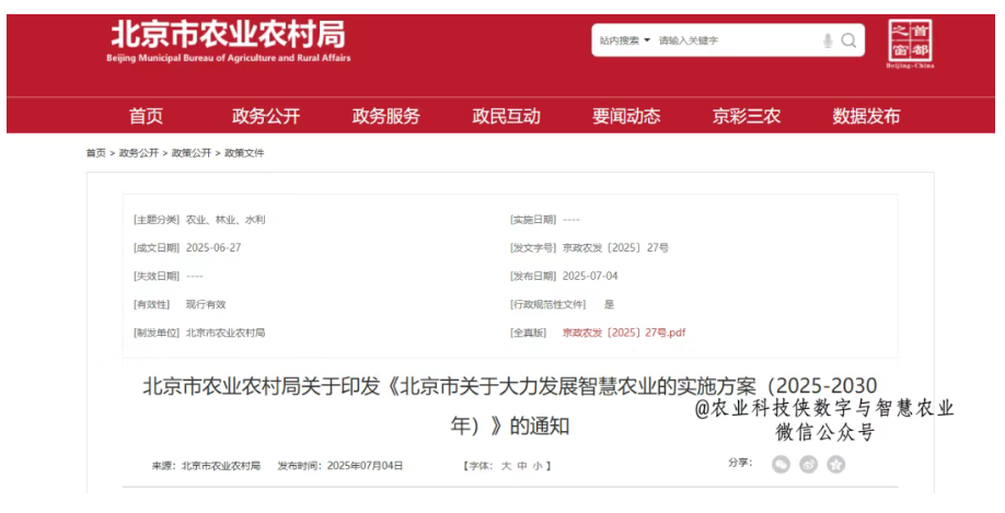 北京市關(guān)于大力發(fā)展智慧農(nóng)業(yè)的實施方案(2025-2030年)