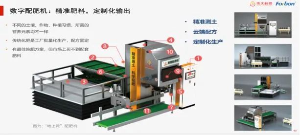 有了配方,我們又會遇到一個挑戰,就是說可能我們在市場中是不容易輕易買到的,因為要結合土壤,結合作物,結合種植習慣,所以基于這個,我們自主研發了數字配備機這樣一個產品,基于土壤數據,作物模型數據輸出的精準的配方,能夠定制化的輸出,能夠定制化的生產出來。
