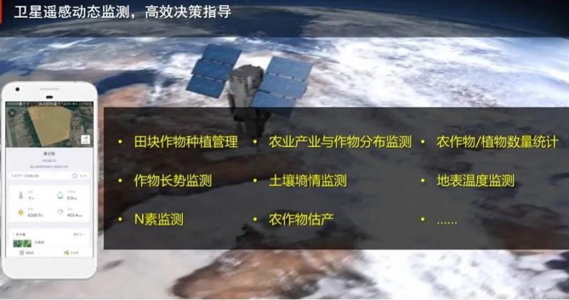 其實衛星它相當于在上面拍照片,不斷的拍你地面上的情況,特別是你的作物的情況。然后我們通過計算機,通過遙感技術,通過算法,通過結合作物的情況,我們可以推演出一些跟農業種植相關的一些應用,比如說這個作物的長勢,通過衛星持續觀測,經過計算機的處理,我就能知道你的作物長得好不好,包括你的地表的溫度的情況。