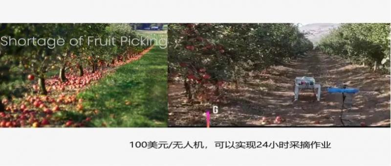 果實成熟采摘需要大量的勞動力,這是目前經濟作物中常見的現象,費工費人費時。為了解決勞動力短期的問題,我們可以通過低成本的無人機進行采摘。它是基于AI識別技術的領域,自動識別作物上哪里有果子,然后進行采摘并分揀放置。目前測試階段已經過了,正進入商業化階段。