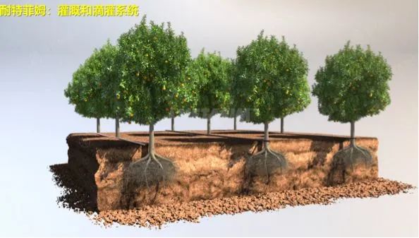 滴灌系統,與傳統的漫灌不一樣,現在稍微標準化一點的果園都在用滴管系統,管中滴水出稱為滴頭。在滴灌系統中,它不是直接漫灌出去,而是通過這個滴頭一點一點輸送出來的。
