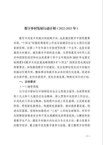 數字鄉村發展行動計劃(2022-2025年)