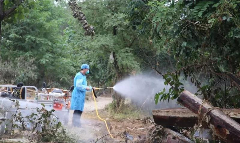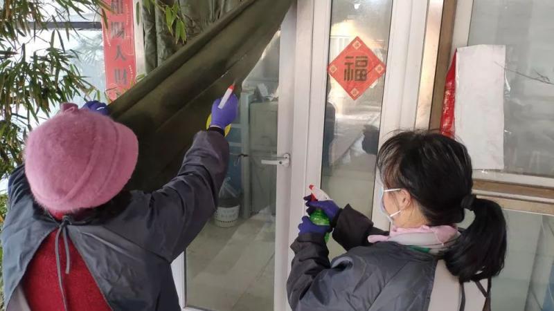 2月9日,北京平人農(nóng)場工作人員在辦公室門口消殺