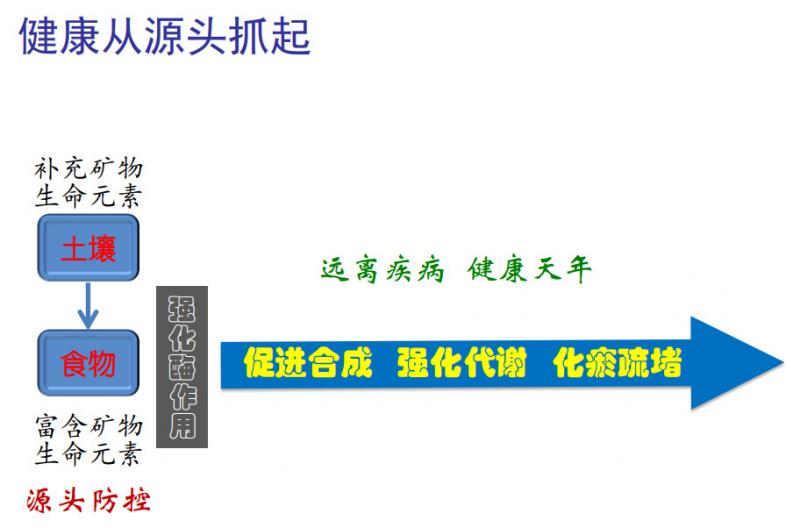 針對現階段存在的問題,徐老師提出,人類把控好生命的源頭,我們要補充土壤中的礦物生命元素,強化酶作用,促進合成、強化代謝、化淤疏堵,從源頭抓起,解決困擾人類的健康問題。
