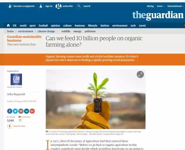 到2050年如何喂飽全世界?這是我們亟待解決的人道主義問題。40年前,時任美國農(nóng)業(yè)部部長曾經(jīng)對此回答:“誰提議發(fā)展有機(jī)農(nóng)業(yè),就叫他先決定一下要餓死美國公民中哪5000萬人”。