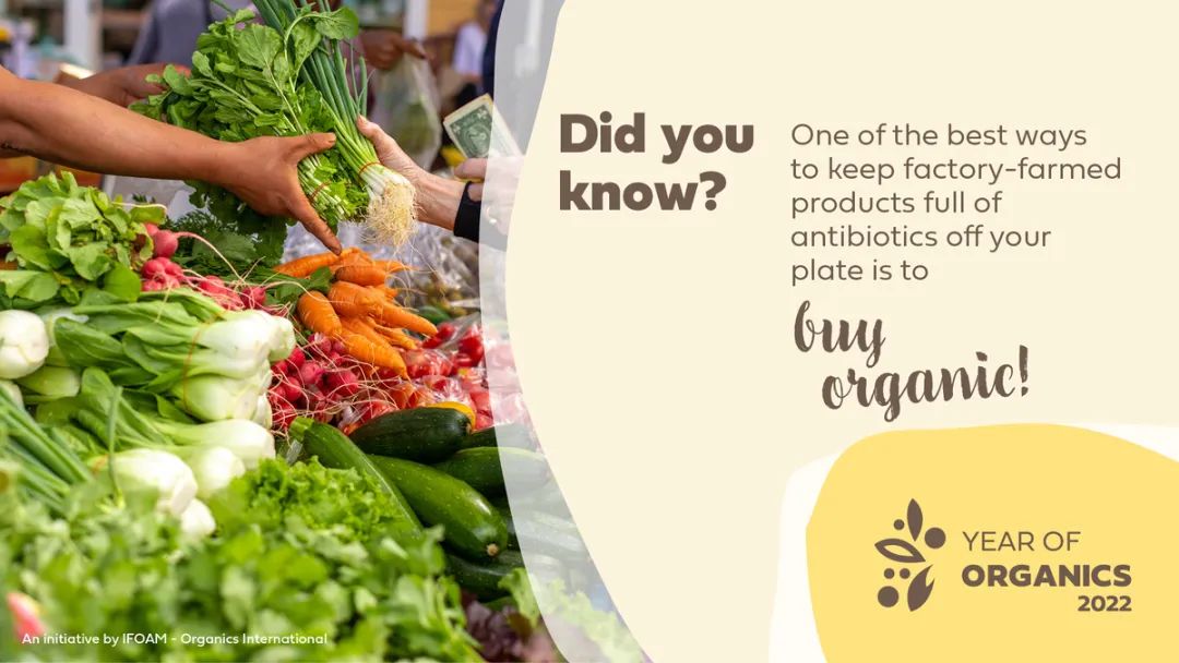 IFOAM將2022年定為“有機年”。“有機年”旨在提高人們對有機農業的認識:有機農業能夠消除饑餓、改善營養不良;也可以緩解貧困、節約水資源、應對氣候危機以及改變不可持續的生產和消費方式。