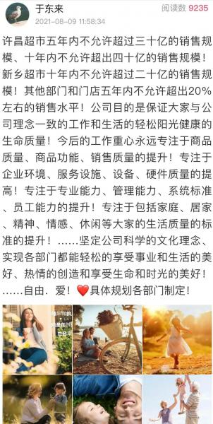 近日,河南胖東來商貿(mào)集團(tuán)董事長于東來在《東來隨筆》中寫道: