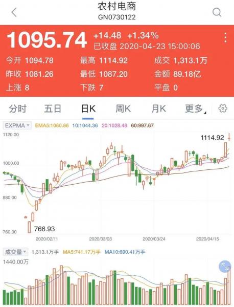 4月23日,不管市場(chǎng)如何震蕩,農(nóng)村電商板塊吹起了號(hào)角,逆市翻紅。供銷(xiāo)大集、深糧控股、農(nóng)產(chǎn)品、芭田股份全部漲停。