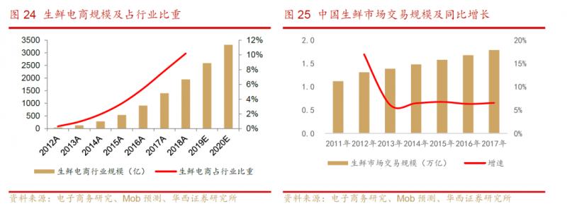 再?gòu)漠a(chǎn)品的銷(xiāo)售角度來(lái)分析,華西證券認(rèn)為,近年來(lái)我國(guó)生鮮消費(fèi)穩(wěn)定增長(zhǎng),基本與城鎮(zhèn)居民消費(fèi)呈同步增長(zhǎng)趨勢(shì),目前在我國(guó)生鮮消費(fèi)的渠道仍然以農(nóng)貿(mào)市場(chǎng)為主,相較于國(guó)外,我國(guó)生鮮超市未來(lái)有較大提升空間。