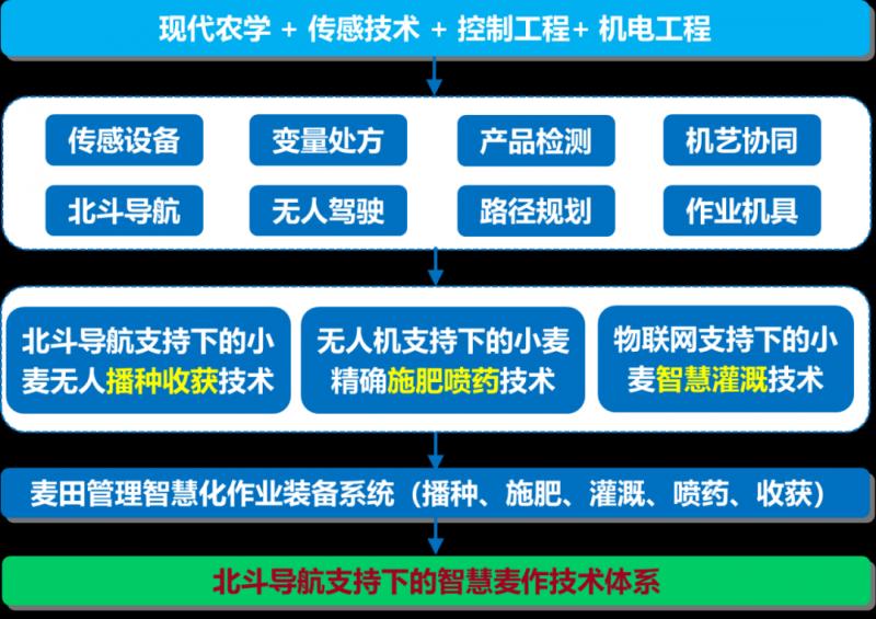 智慧麥作技術將北斗導航、現代農學、信息技術、農業工程等應用于小麥生產耕、種、管、收的全流程,建立以“信息感知、定量決策、智能控制、精確投入、特色服務”為特征的現代化農業生產管理方式,實現小麥生產作業從粗放到精確、從有人到無人方式的轉變。