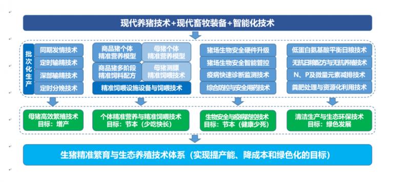 生豬精準繁育生態養殖技術,聚焦母豬批次化生產與高效繁殖、精準營養與個體精準飼喂、生物安全與疫病防控以及清潔生產與生態環保等重大需求,貫穿育、繁、料、管、病、糞、設施設備等一系列重要環節,進行全產業鏈技術組裝集成,為我國生豬產業提檔升級和產能恢復提供技術模式,為非洲豬瘟防控和糞污資源化利用提供技術支撐。