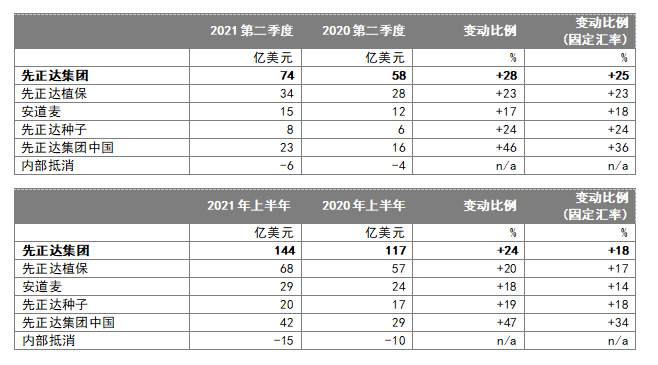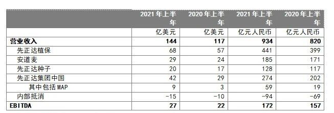 2021年上半年,先正達種子的營業(yè)收入增長了 19%(按固定匯率增速為 18%),達到 20億美元。
