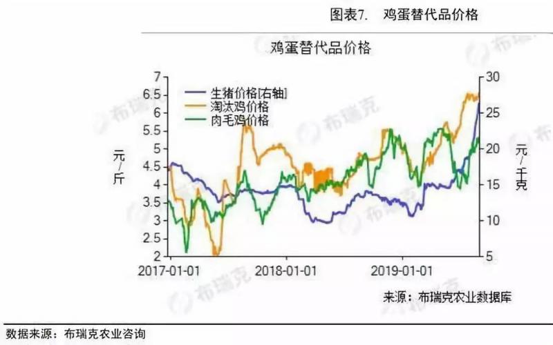 過高的豬肉價格及部分消費者對疫情擔憂,豬肉消費減少,禽肉、禽蛋供應增加,大量擠占了豬肉消費。豬肉價格高及部分消費者對疫情擔憂也主動減少了豬肉消費,預計2019年豬肉消費量下降超過15%,甚至更高,該部分市場將有禽肉、水產、牛羊肉甚至雞蛋替代,雞蛋價格低,雖然口感上與肉類存在明顯差異,但巨大的價差且同屬食品蛋白,雞蛋將大量替代豬肉消費。
