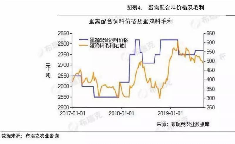 近兩年蛋雞平均養殖利潤在10元/百只.天左右,實際自配料養殖利潤高于該理論數值;蛋雞的飼料價格及雞雛價格決定了其養殖成本,其中飼料成本約占75%,雞苗成本約20%。
