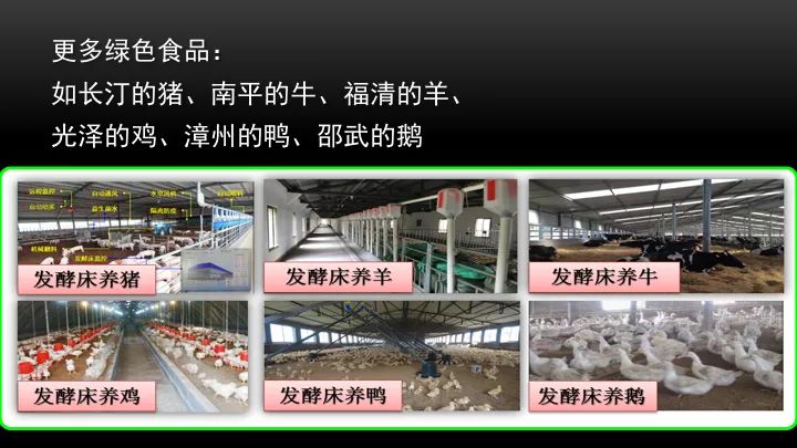 微生物發酵床具有很多的優點,我們把它總結了一下,叫做5 4 3 2 1 0,五省就是,省水、省工、省料、省藥、省電、五省;四提就是提高品質、提高免疫力、提高出欄率、提高料肉比、料肉比提高飼料利用率;三無就是無臭味、無蠅蛆、無環境污染;兩增,經濟效益和生態效益增加;一少,減少豬肉抗生素殘留,這個非常要緊;還有零,零就是零排放。所以這一技術現在,在豬、羊、牛、雞、鴨、鵝上得到很好的應用。今后,我們可以越來越多地吃到,像長汀的豬,發酵床豬,南平的牛,發酵床牛,福清的羊,發酵床羊,光澤的雞,發酵床雞,漳州的鴨,發酵床鴨,邵武的鵝,發酵床鵝。