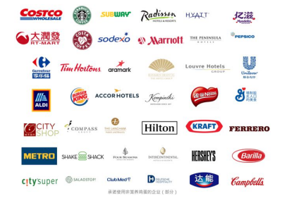 目前,在全球范圍內(nèi)已經(jīng)有2000多家企業(yè)承諾將在2025年前100%采購(gòu)非籠養(yǎng)雞蛋,其中有超過(guò)50家公司的承諾范圍內(nèi)包含中國(guó), 這些公司涉及包括雅高、星巴克、Costa、萬(wàn)豪、凱悅、朗廷、雀巢、好時(shí)、聯(lián)合利華等國(guó)際著名品牌。