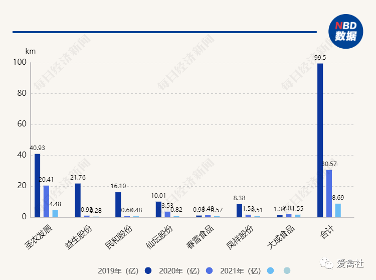 也就是說,這家公司在去年第四季度虧掉了兩億多。忙碌一年后,益生股份一年的辛苦只剩了一個零頭,不僅比2020年的0.92億元盈利減少69.07%,與2019年的21.76億元更是懸殊。