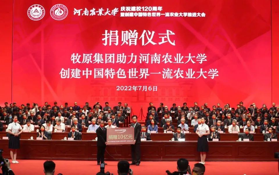 7月6日,河南農業大學120周年校慶之際,河南農大1985級校友、牧原股份董事長秦英林向母校捐贈10億元。