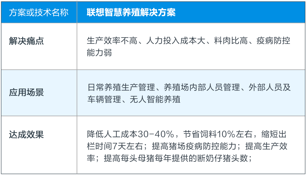 憑借在農業數字化方面完善的頂層規劃,聯想從系統集成的角度出發,將自身的行業know-how與專業知識相結合形成一套標準化的智慧養豬解決方案,幫助產業解決成本高、效能低等諸多實際問題。