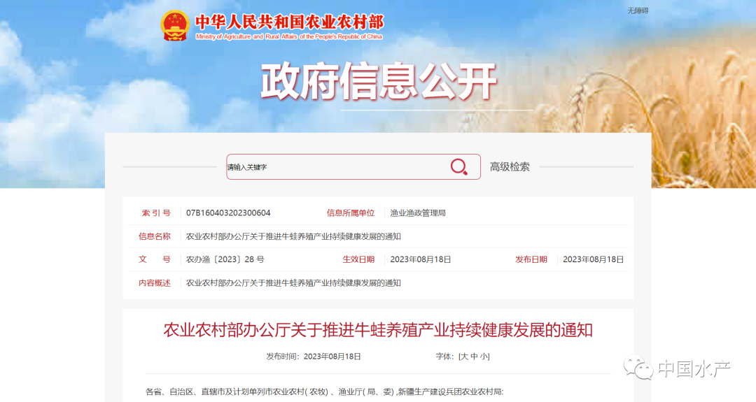農業農村部辦公廳關于推進牛蛙養殖產業持續健康發展的通知