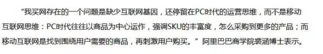 對于,我買網虧損的原因,阿里巴巴商學院裘涵博士給出了結論:缺少移動互聯網思維。