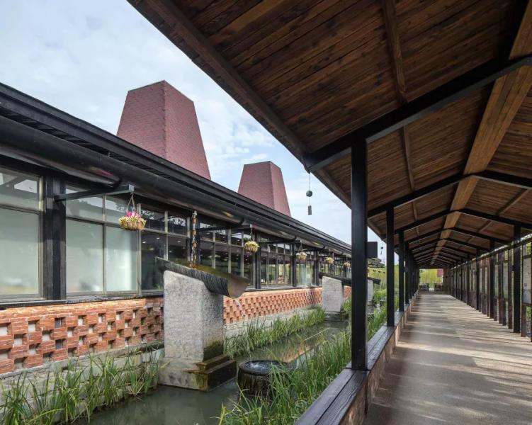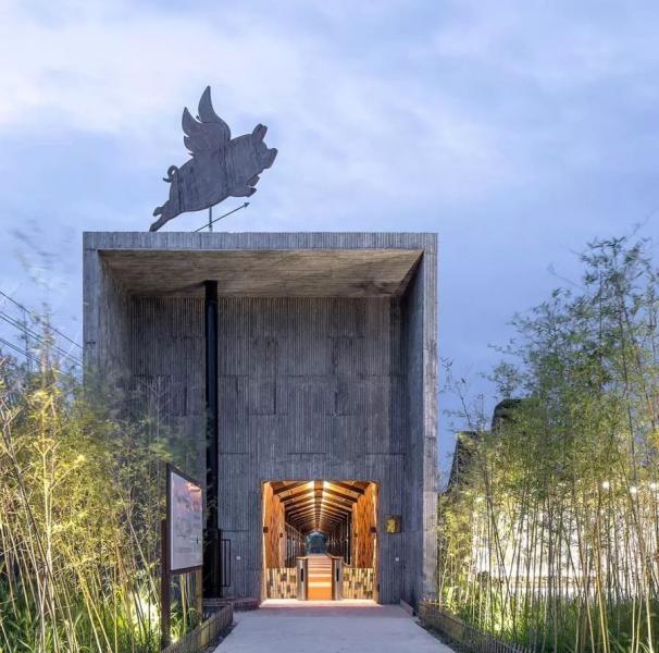 這棟養豬場建筑用了符合鄉下施工的紅磚、混凝土、水洗石、自然光、水、工人的意外的“自由發揮”,設計了這個豬場。場主期望用這棟建筑來展示豬肉的加工過程和豬肉產品展示,并以此作為整個牧場發展觀光業的起點。