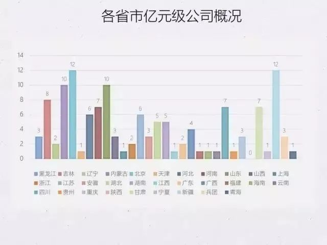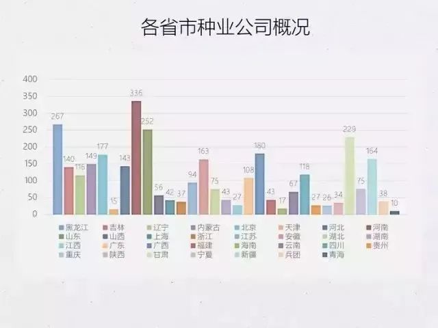 從圖中的億元資質(zhì)公司的總數(shù)來看,基本上每個省份都有億元資質(zhì)的種業(yè)企業(yè),但是唯獨六朝古都的陜西省沒有。數(shù)量最多前六省份:北京、新疆兵團、山東 、吉林 、河南、四川。