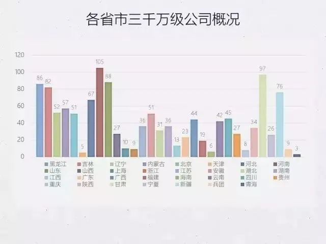 從圖中的三千萬資質(zhì)公司的總數(shù)來看,主要集中黑、吉、遼、內(nèi)、冀、魯、豫等省份。