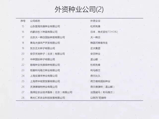 1996 年泰國正大集團在湖北襄樊投資建設(shè)襄樊正大農(nóng)業(yè)開發(fā)有限公司,這是公開報道的第一家外資控股建設(shè)的種業(yè)公司,隨后太平洋、孟山都、杜邦先鋒、先正達等紛至沓來。