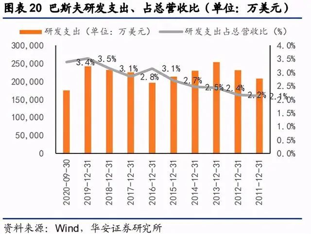 巴斯夫在亞太地區(qū)擁有 4 個研發(fā)中心。除各業(yè)務(wù)部,三大全球研發(fā)平臺(工藝研究 與化學(xué)工程平臺、先進材料與系統(tǒng)研發(fā)平臺、生物科學(xué)研發(fā)平臺)給予巴斯夫強大的創(chuàng) 新能力。作為巴斯夫先進材料與系統(tǒng)研發(fā)平臺的全球總部,上海創(chuàng)新園是巴斯夫在亞太 地區(qū)最大的研發(fā)基地。巴斯夫加注重為種植者提供相關(guān)解決方案,以平衡農(nóng)業(yè)產(chǎn)量、環(huán) 境保護和社會需求。巴斯夫規(guī)劃其農(nóng)業(yè)解決方案創(chuàng)新管道的峰值銷售潛力將增加到 75 億 歐元以上,到 2029 年,將上市 30 多個研發(fā)成果,涵蓋新型種子和性狀、化學(xué)和生物作 物保護、數(shù)字農(nóng)業(yè)產(chǎn)品和新型制劑。在 2019 年,巴斯夫農(nóng)業(yè)解決方案業(yè)務(wù)部的研發(fā)支 出達 8.79 億歐元,約占該部門銷售額的 11%。