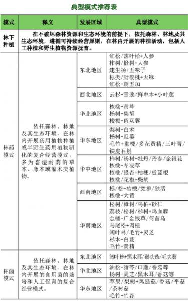 依托森林、林地及其生態環境,遵循可持續經營原則,在林內開展的種植活動,包括人工種植和野生植物資源撫育。主要包括林藥模式、林菌模式、林茶模式、林果模式、林菜模式、林苗模式、林草模式、林花模式等。