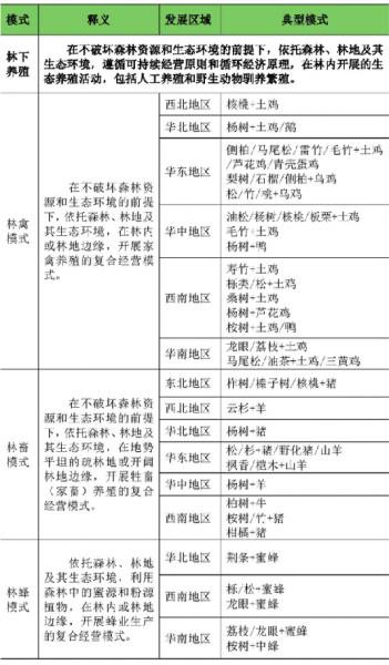 依托森林、林地及其生態環境,遵循可持續經營原則和循環經濟原理,在林內開展的生態養殖活動,包括人工養殖和野生動物馴養繁殖。主要包括林禽模式、林畜模式、林蜂模式、林漁模式、林特模式等。