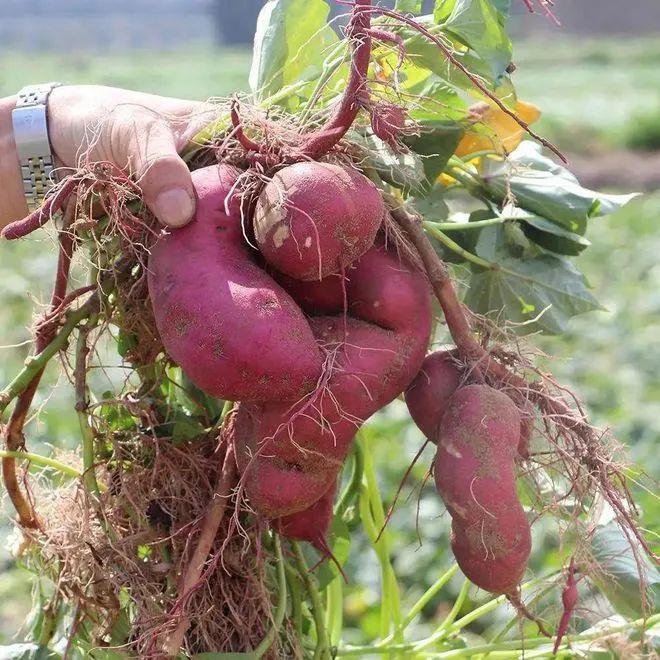與國內其他地方不同的是,沙土村地瓜種植時采用起高壟、高密度種植,每畝種5000株,而且地瓜藤蔓水平種植,不是斜插,這樣才能保證結果均勻。